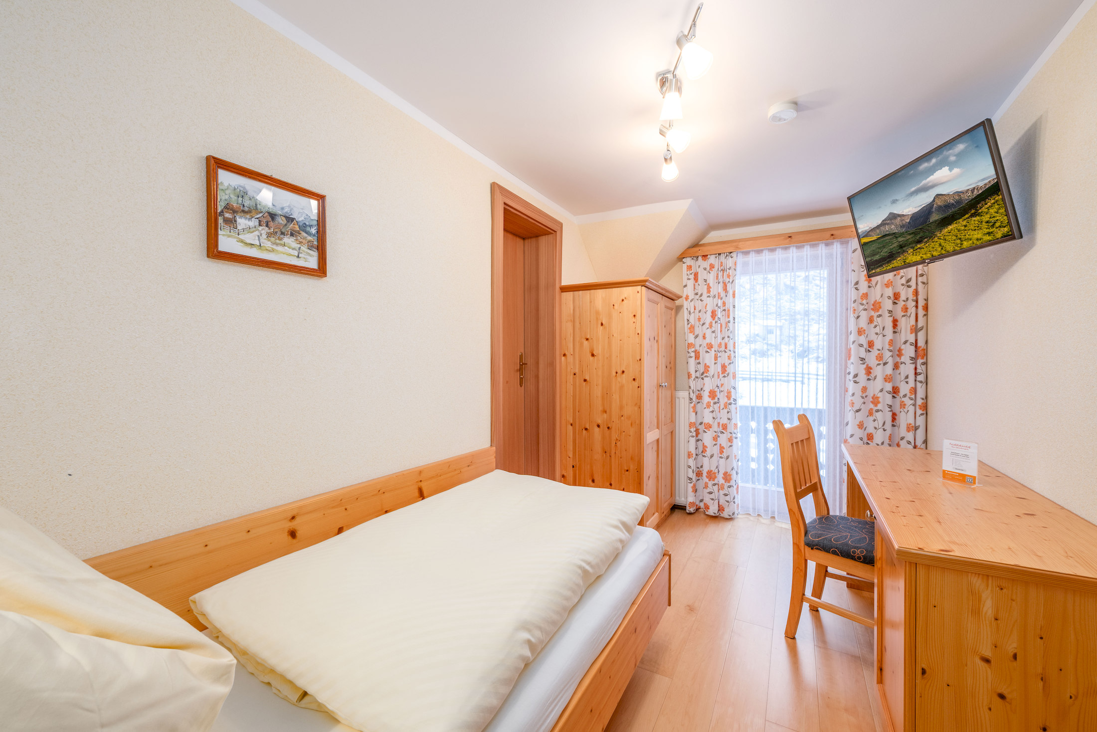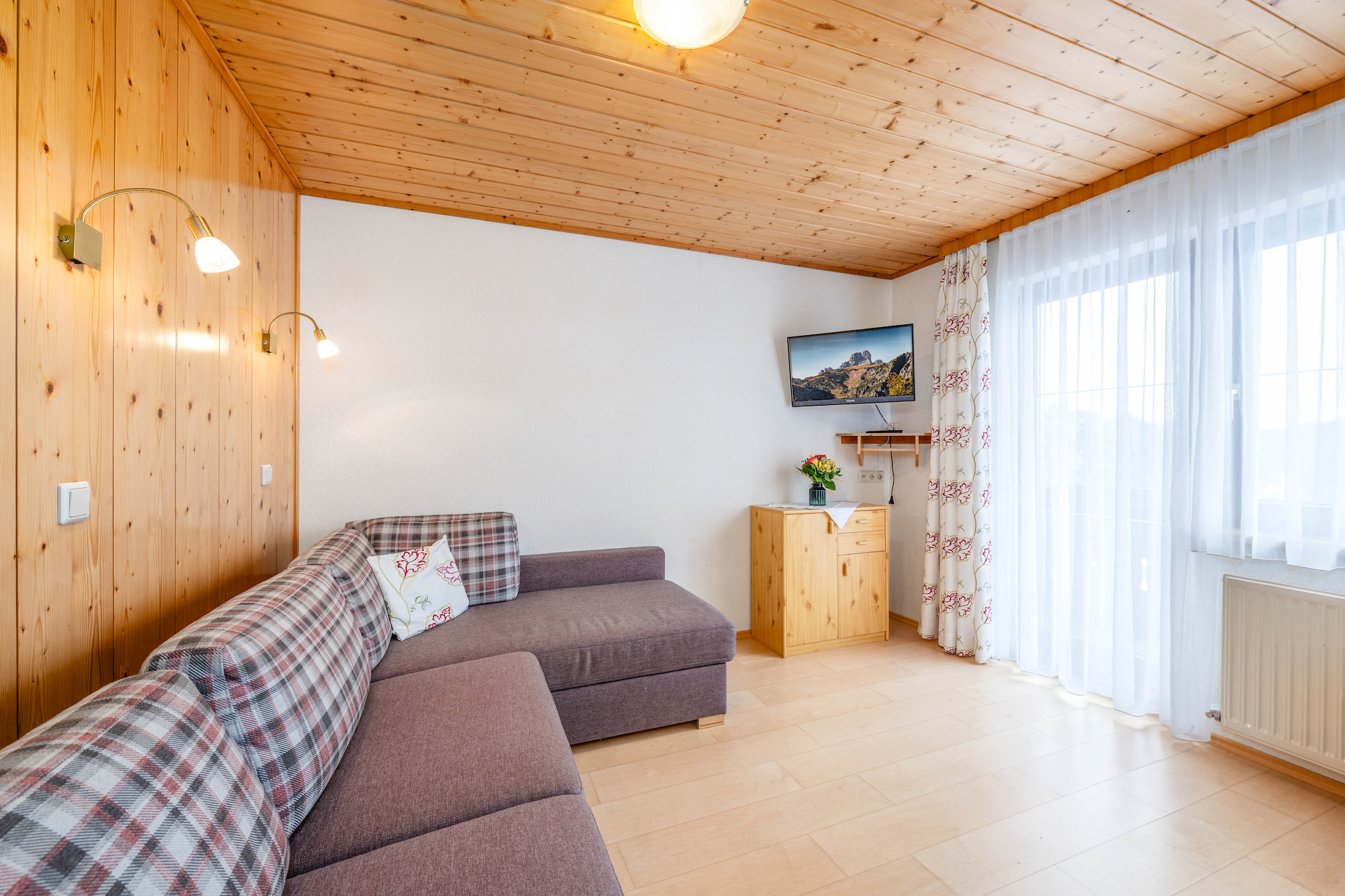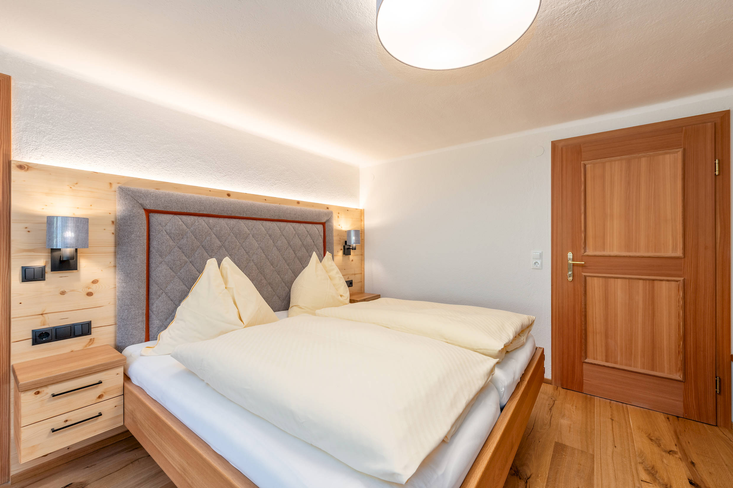 Entdecke die hellen und gemütlichen Zimmer mit viel Holz, größtenteils mit Balkon und herrlichem Bergblick.