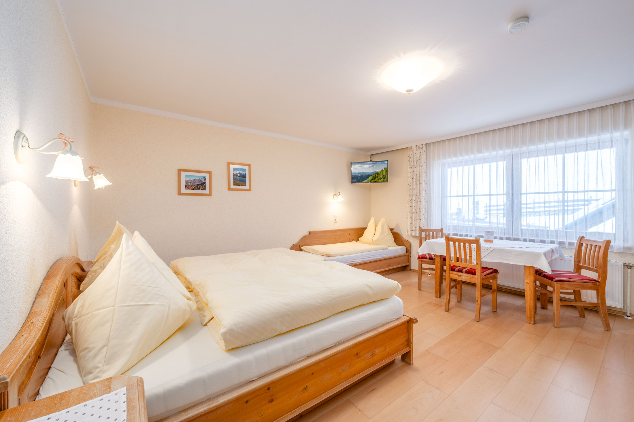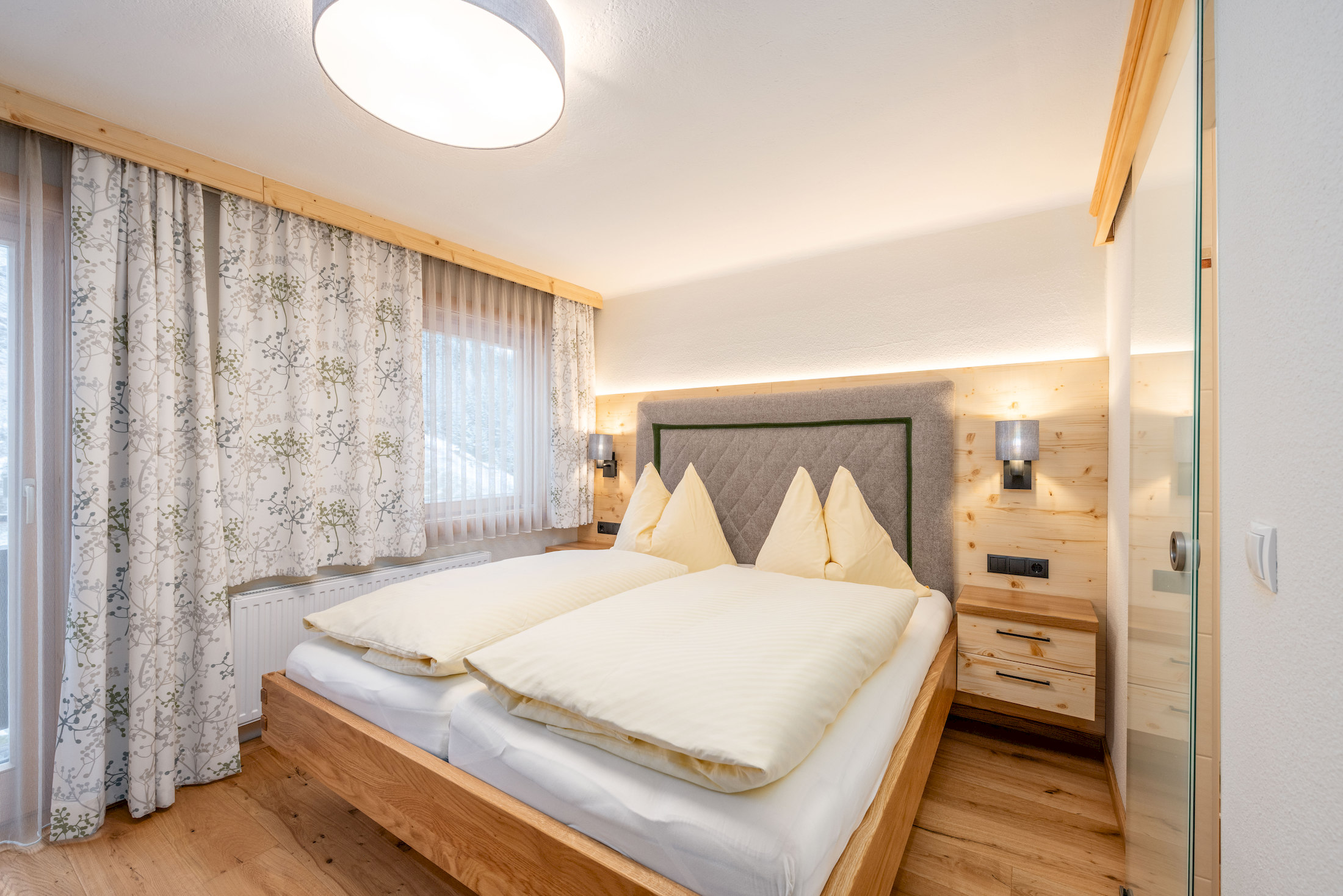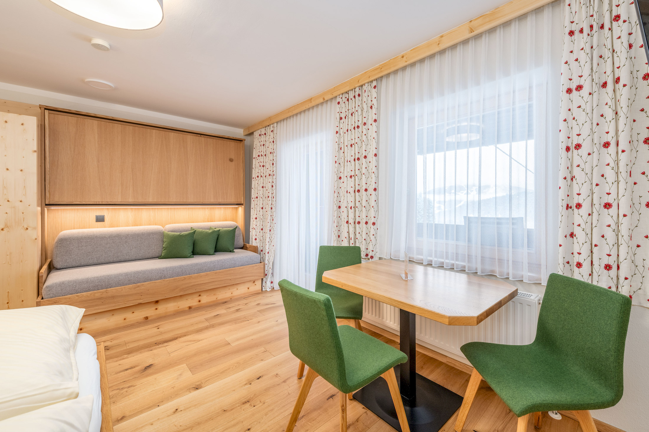 Entdecke die hellen und gemütlichen Zimmer mit viel Holz, größtenteils mit Balkon und herrlichem Bergblick.
