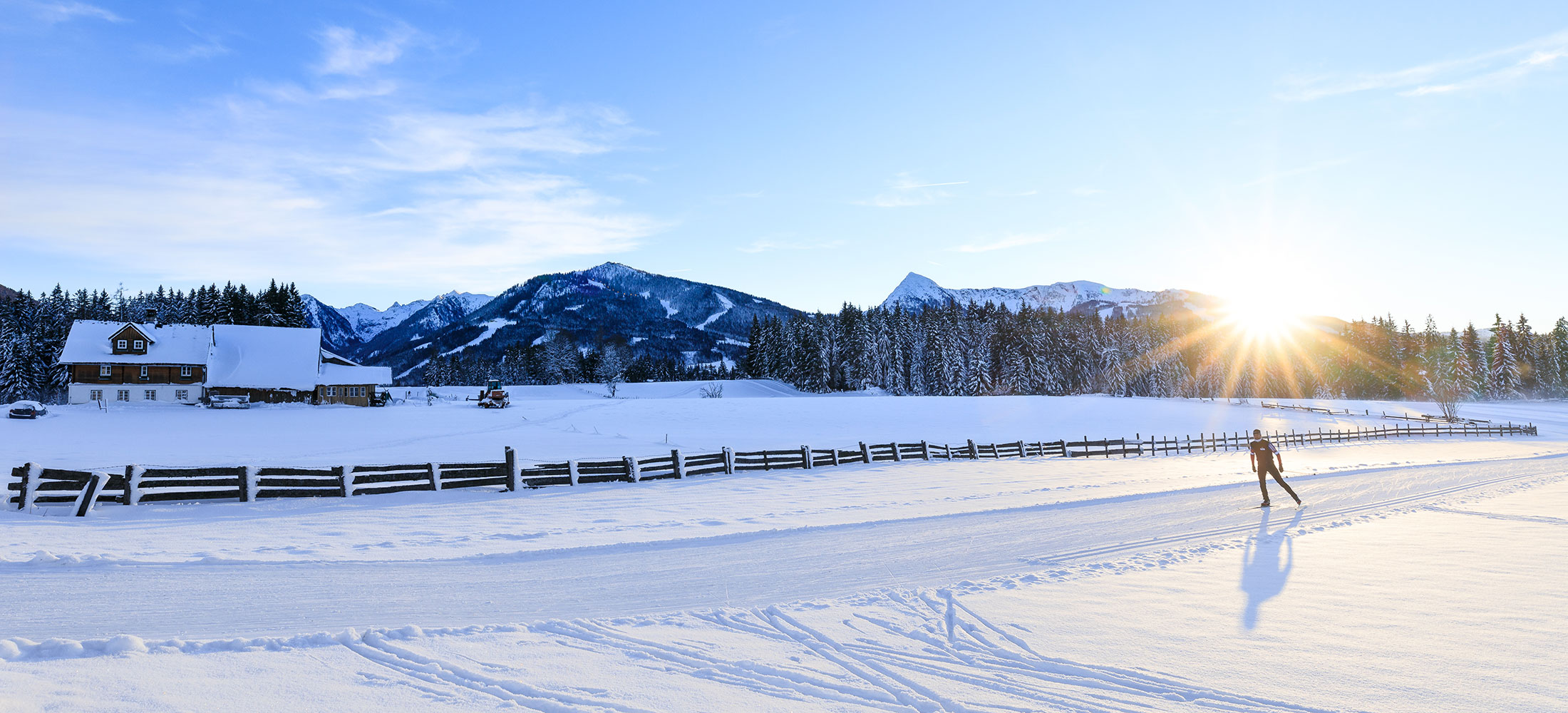 Rund um den Feichtlehnerhof befindet sich ein wahres Langlaufparadies: über 220 km bestens präparierte Loipen für Klassiker und Skater. Vom sonnigen Plateau bis zur Höhenloipe am Dachstein-Gletscher – rund zwanzig abwechslungsreiche Routen bieten Genuss und Herausforderung zugleich. Der Einstieg in die Loipe ist ganz unkompliziert: Über einen Skiweg, der direkt beim Haus beginnt, gelangt man direkt ins Loipennetz. Den Einstieg zur Nachtloipe findest du im Langlaufstadion Ramsau Ort – ganz in der Nähe.